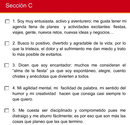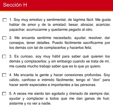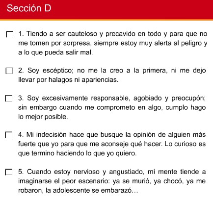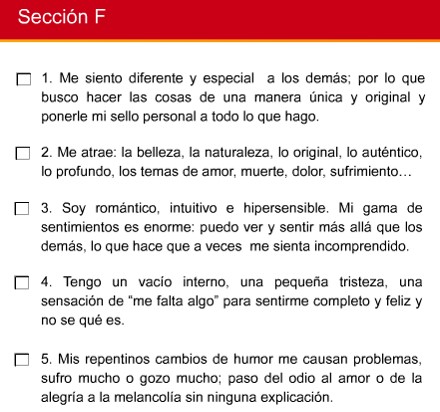 Apunta en un papel con cuántas frases de cada sección estás de acuerdo ( no podrás marcar directamente en la imagen)