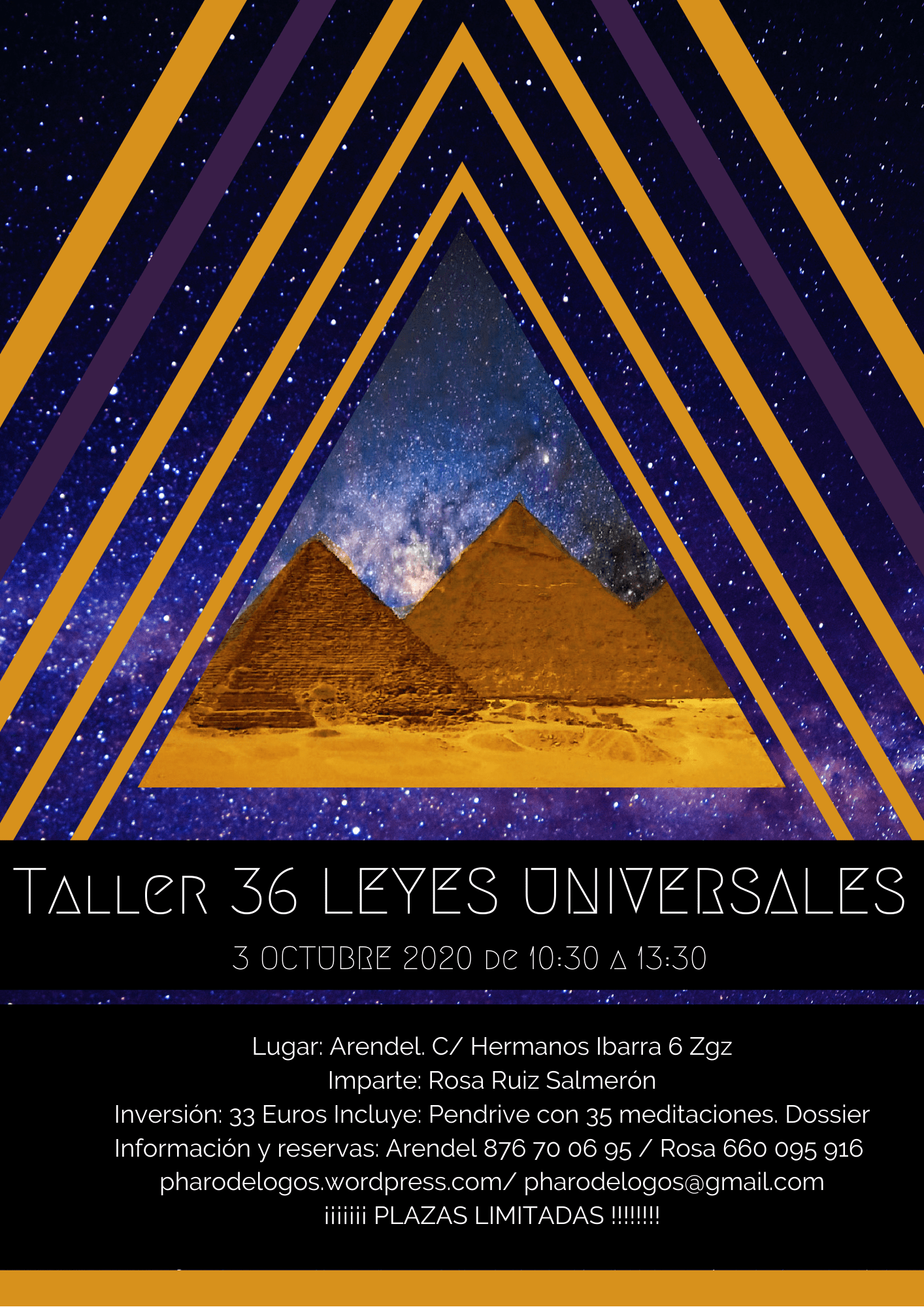 En el taller ¡¡¡¡¡presencial!!!!! de tres horas, conoceremos las 36 leyes universales, la forma de ponerlas en práctica, y finalizaremos con una poderosísima meditación.
