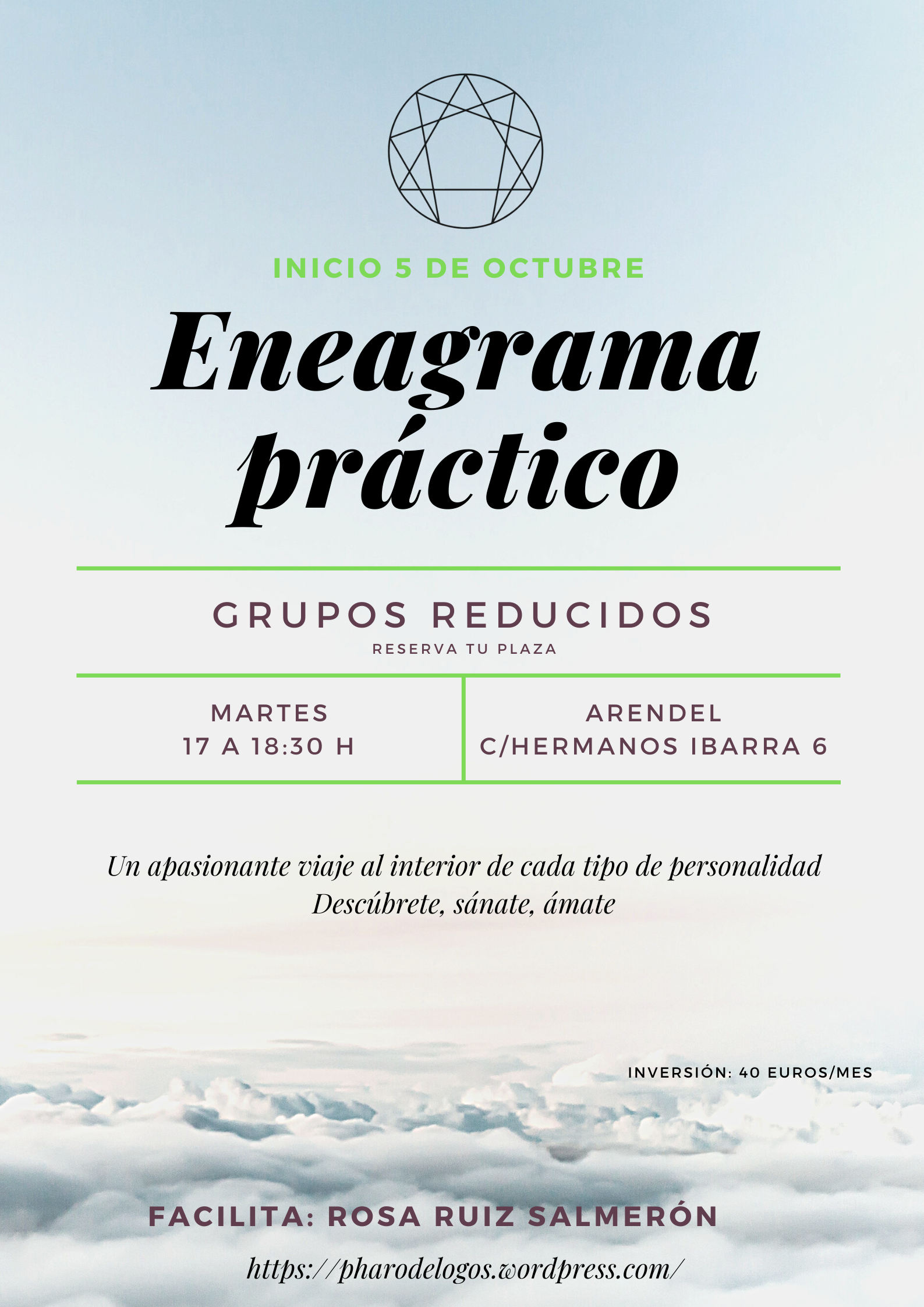 Para los que lo echabais de menos, por supuesto, en la oferta de cursos no podía faltar el Eneagrama, ese mapa maravilloso que nos ofrece tantísimo conocimiento, tantísimas aplicaciones en nuestra vida cotidiana, la mejor herramienta para conocernos, para conocer a nuestros hijos, nuestras parejas, para aplicarlo a nuestra vida laboral…